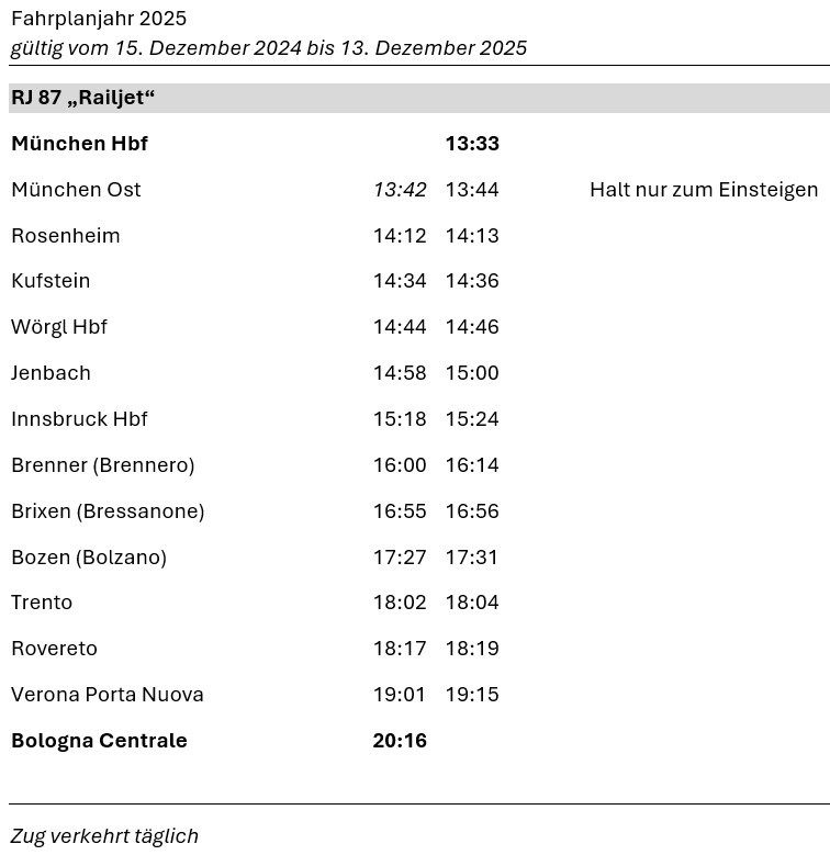 München Hbf – Bologna Centrale